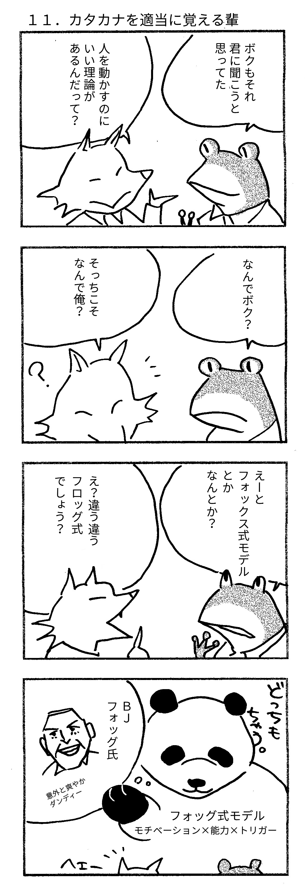 ホームマンガ【ささパンダの仕事場】カタカナを適当に覚える輩 2019/02/06 ツイート シェア はてブ Google+ Pocket LINE 他にもささパンダの仕事場をみたい方はこちらをクリック!https://sales-meeting.hiroshi-sasada.com/?cat=75共感できたら、是非シェアしてくださいね!